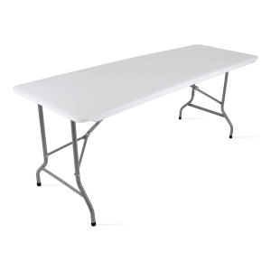 A2Z 6FT Folding Table Heavy Duty White Plastic Trestle Table for Indoor Outdoor Use Portable Fold-in-Half Design with Carry Handle Iron Frame Camping Catering Events Workstation