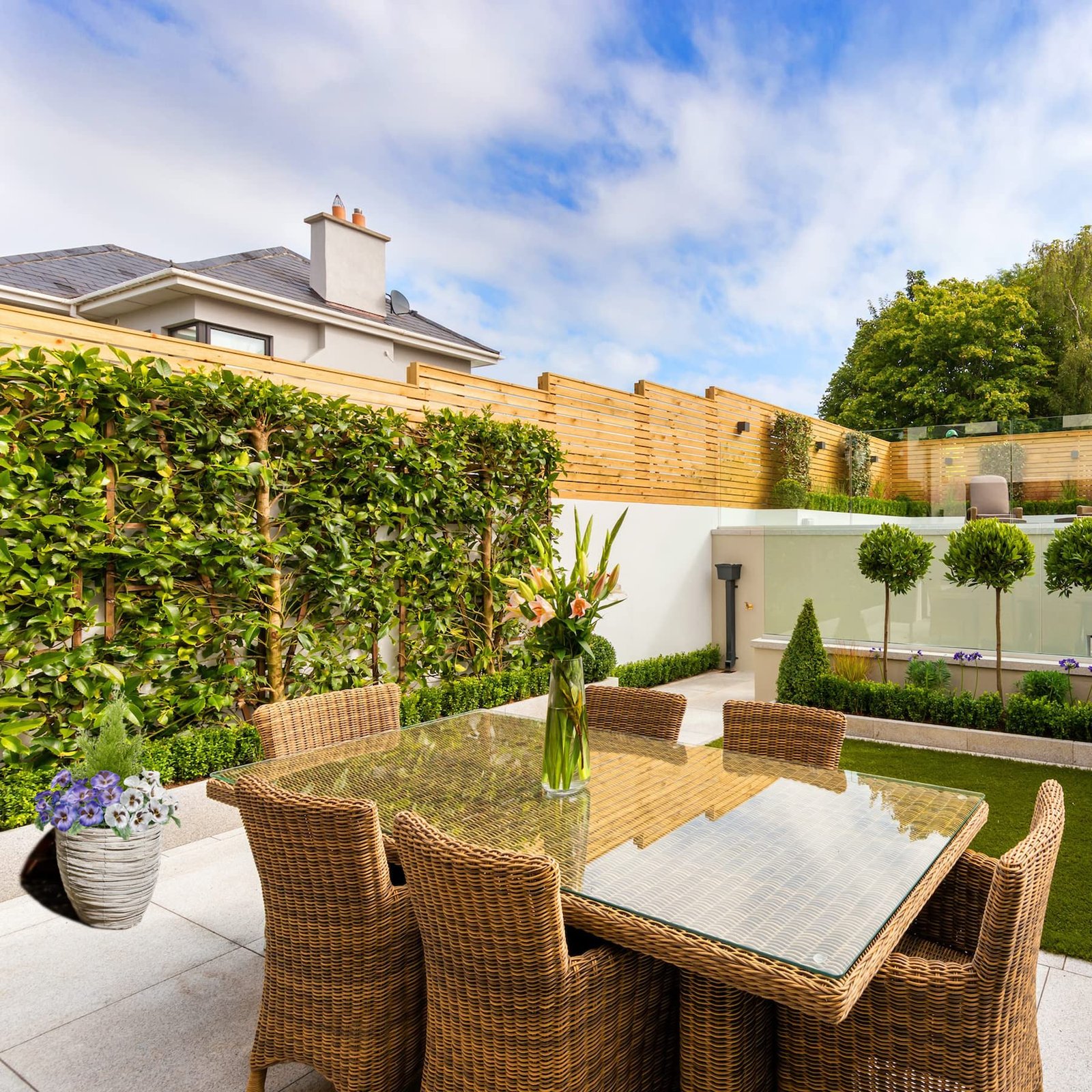 4 reviews for 2 x Artificial Rattan Patio Planters Purple and White Faux Silk Pansies with Conifer/Cedar Topiary ideal for Home, Patio, Garden Outdoor Living 60cm/23.5in