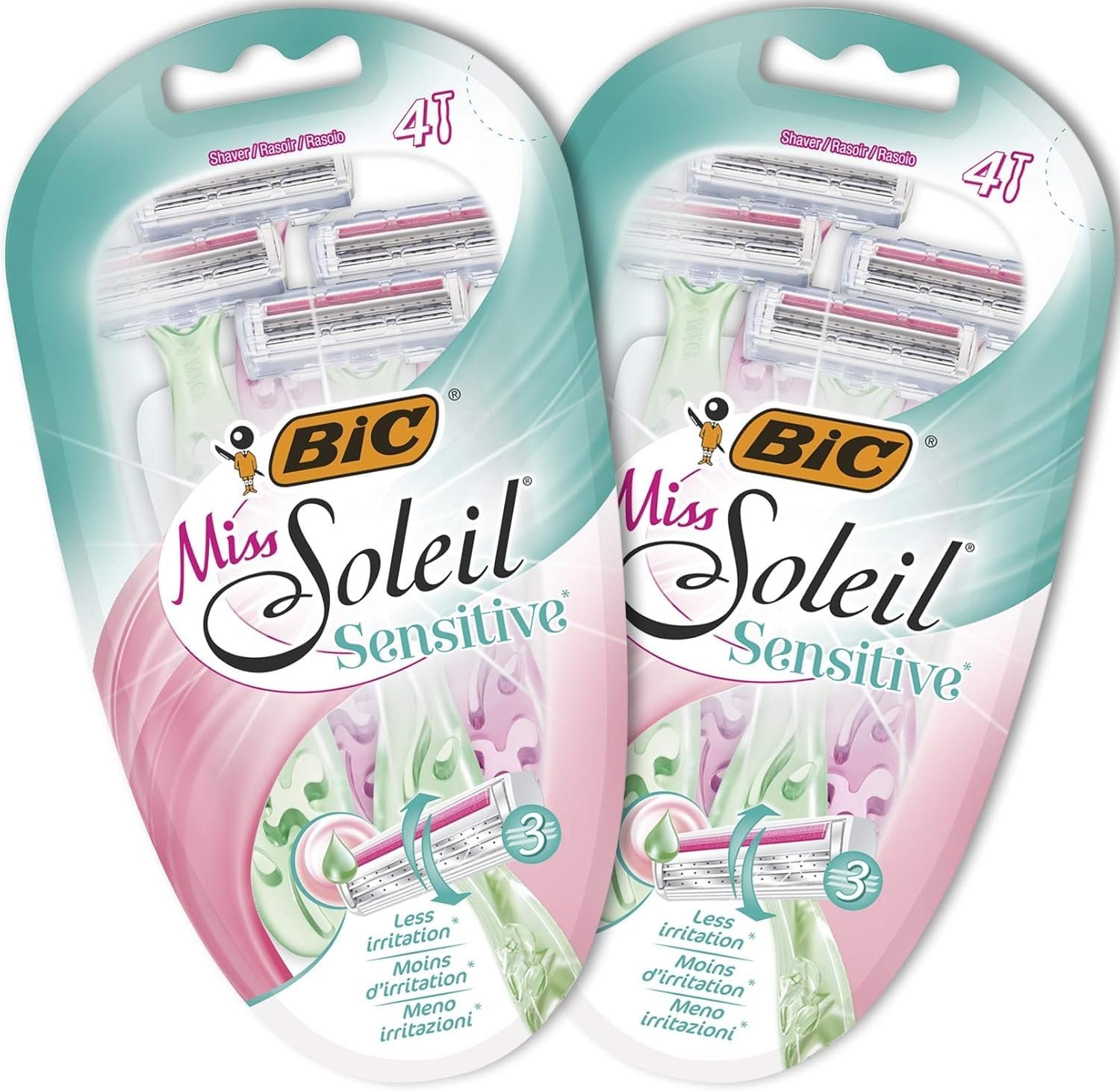 BIC Miss Soleil Sensitive Women’s Razors, Bundle of 2 Packs of 4