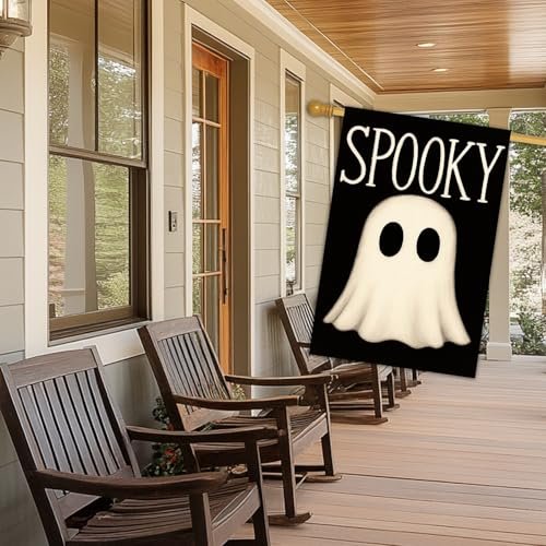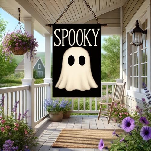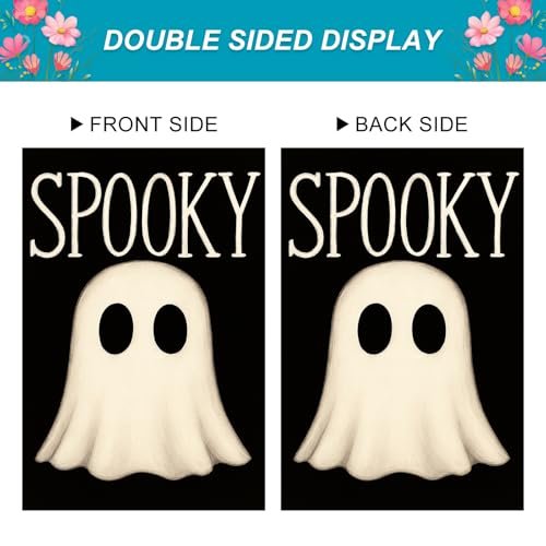 - Double Sided Halloween Decor: The full flag design, including the ghost and the “SPOOKY” text, is printed on both sides of this 28 x 40 inch banner. This ensures that your seasonal greeting is visible from any direction, allowing your outdoor porch yard decor to look festive for all who pass by.