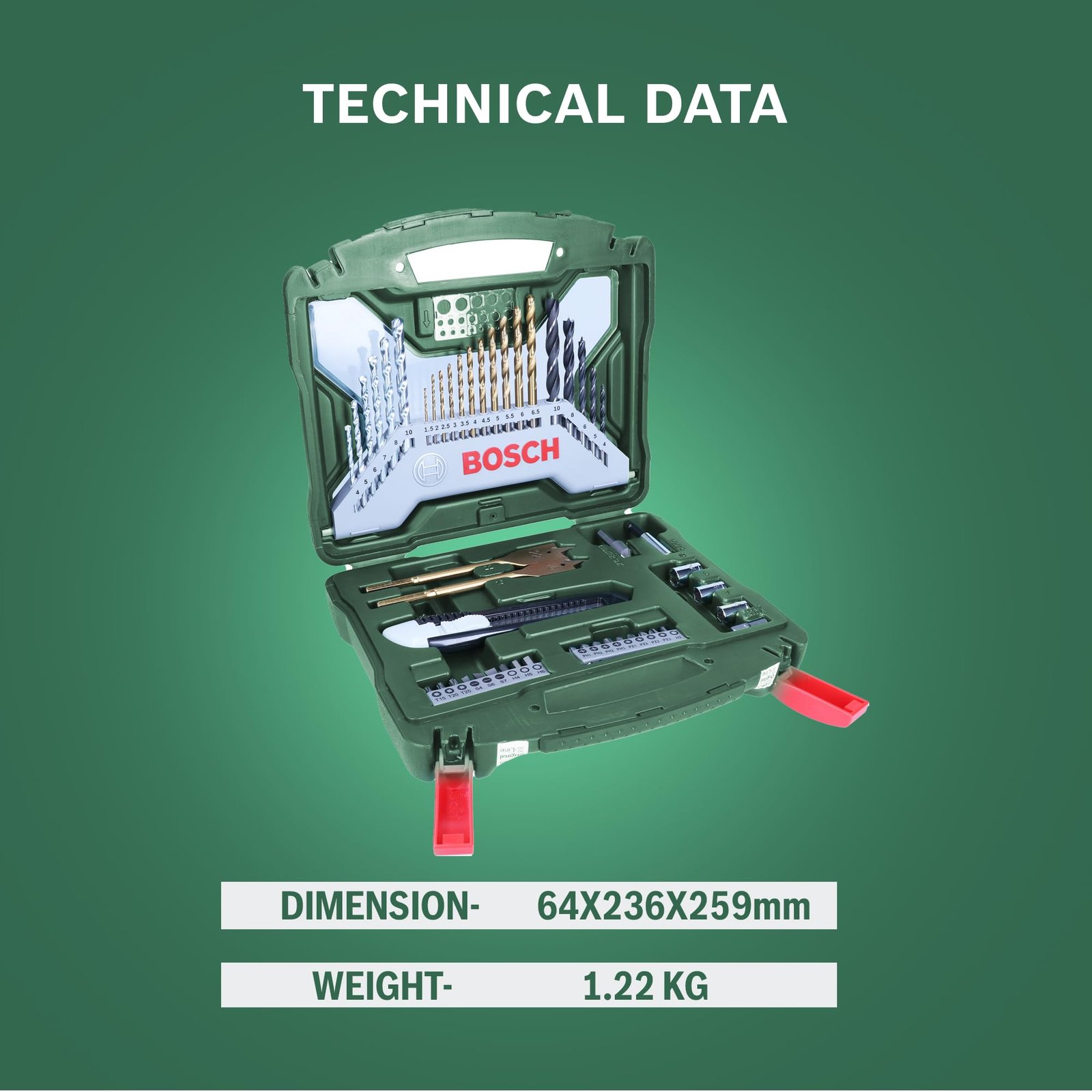 • Suitable for all handheld and stationary drills with a practical Bosch X-Line case for the clear layout of the contents