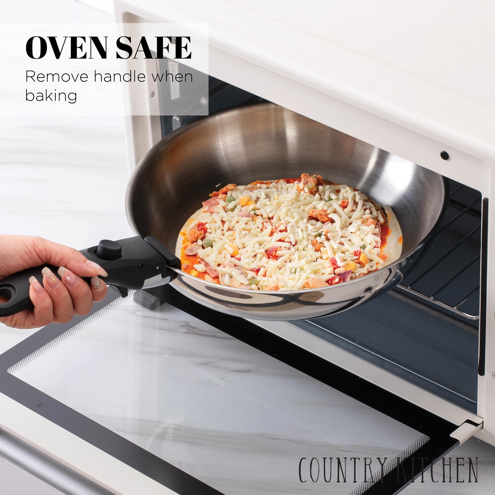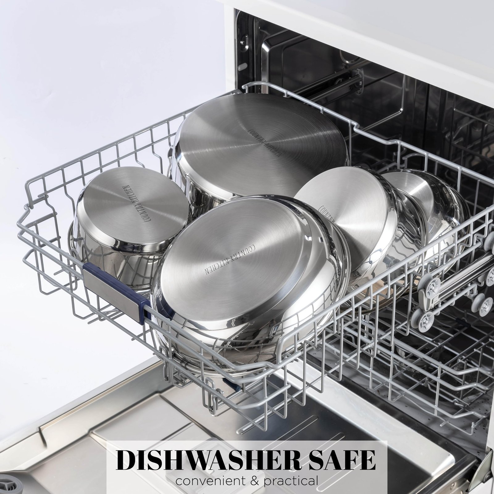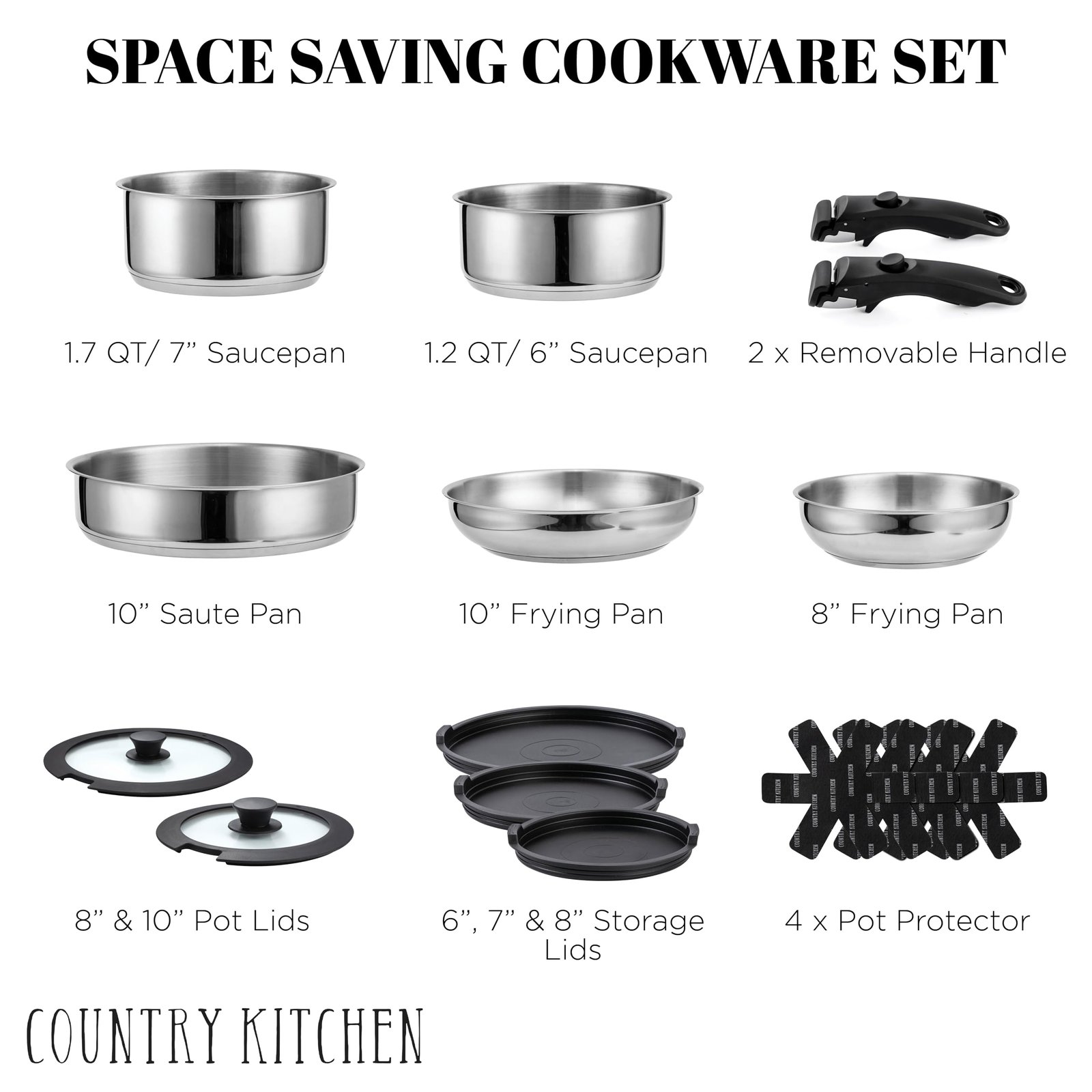 Country Kitchen Cookware Set with Removable Handle, Oven & RV Safe Pots and Pans Set, Stainless Steel, Original