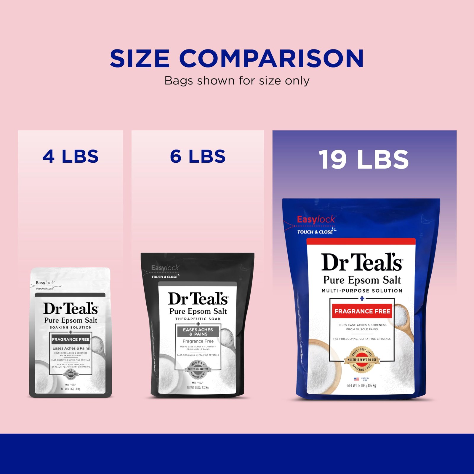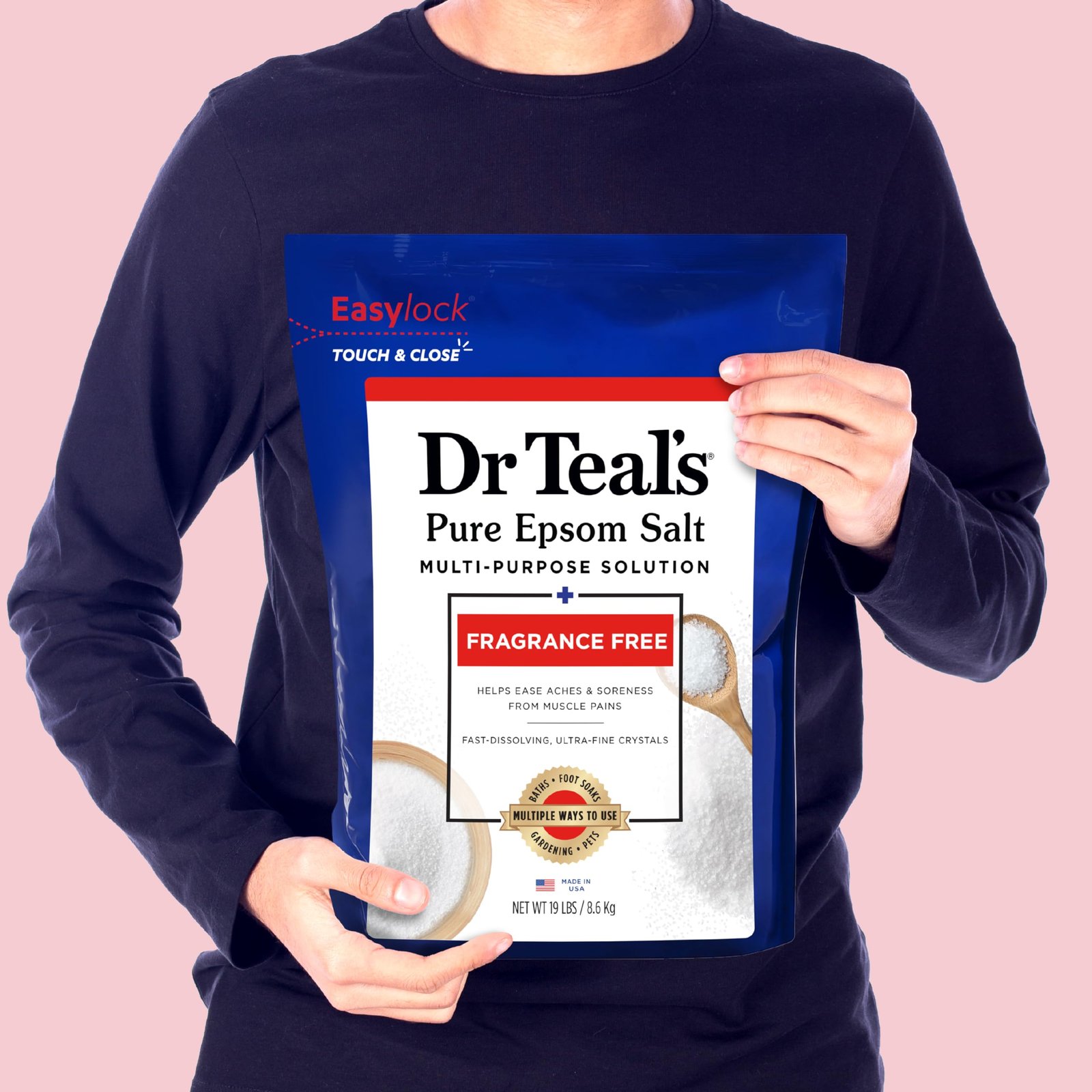 Dr Teal’s Pure Epsom Salt Bulk Magnesium Sulfate USP, Fragrance Free, 19 lbs