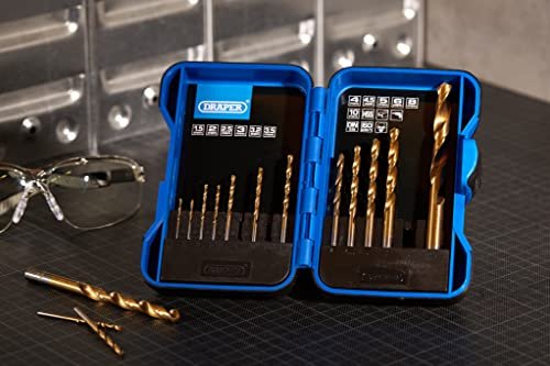 Draper HSS 15 Piece Titanium Nitride Coated Drill Set | 1.5 to 10mm Masonry Kit |10/13mm Chuck | 135° Split Point | Multifunctional Drill Bits | Foldable Storage Case | 18549