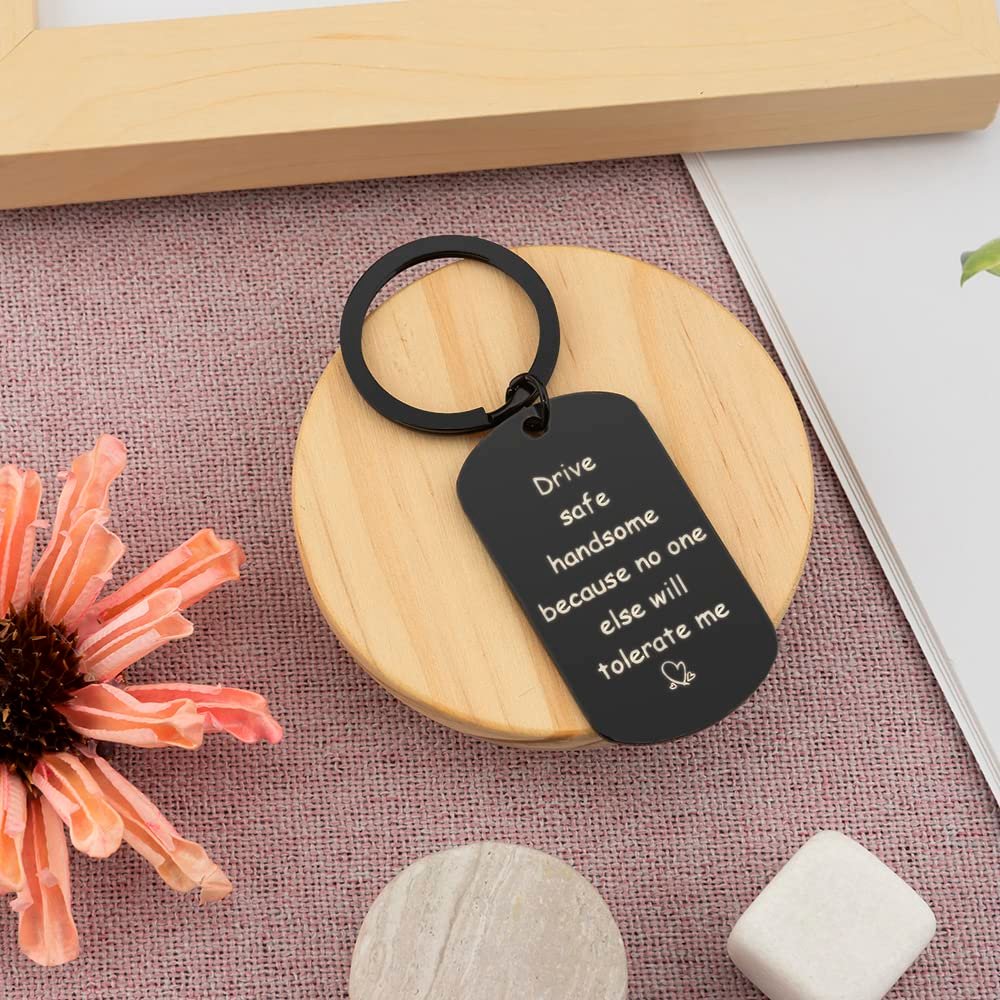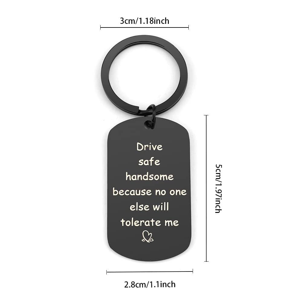 • 【Drive Safe Keyring Gifts】”Drive safe handsome because no one else will tolerate me.” The keyring is especially suitable as gifts for boyfriend, gifts for husband, gifts for dad, son, brother, fiance, fiancee, groom, bridegroom, truck driver to remind them to keep safe when they are driving.