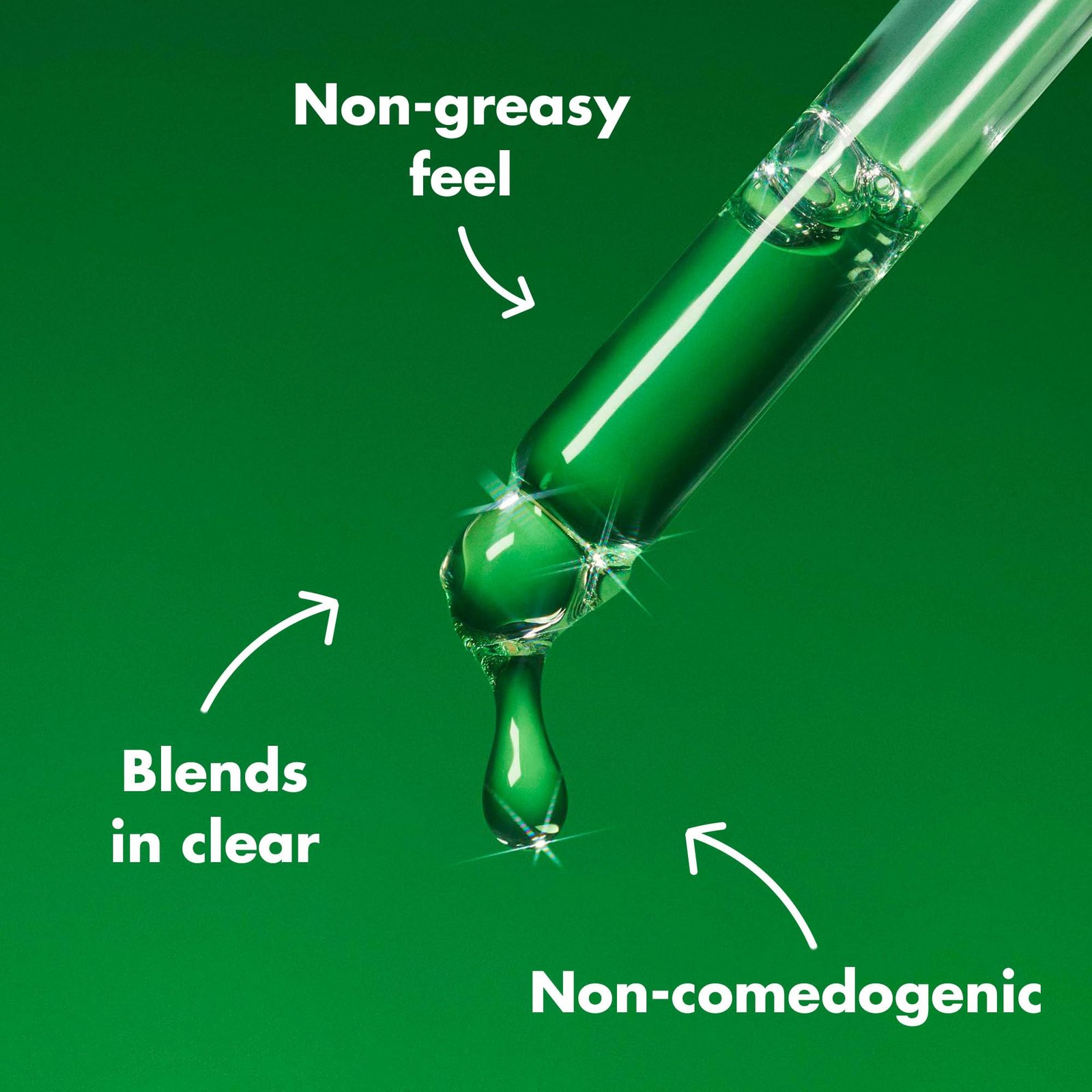 Massage 3-5 drops of facial oil onto clean skin at night, avoiding the eye area. The formula’s green color will absorb fast with a non-greasy feel.