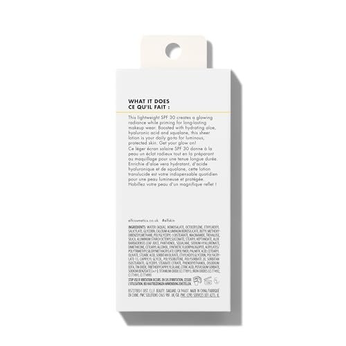 - CREATES A RADIANT COMPLEXION: The e.l.f. Suntouchable Whoa Glow SPF 30 creates a flattering finish with a hint of sheer peach shimmer for a natural, radiant glow while the chemical SPF 30 helps protect skin against UVA and UVB sun rays.