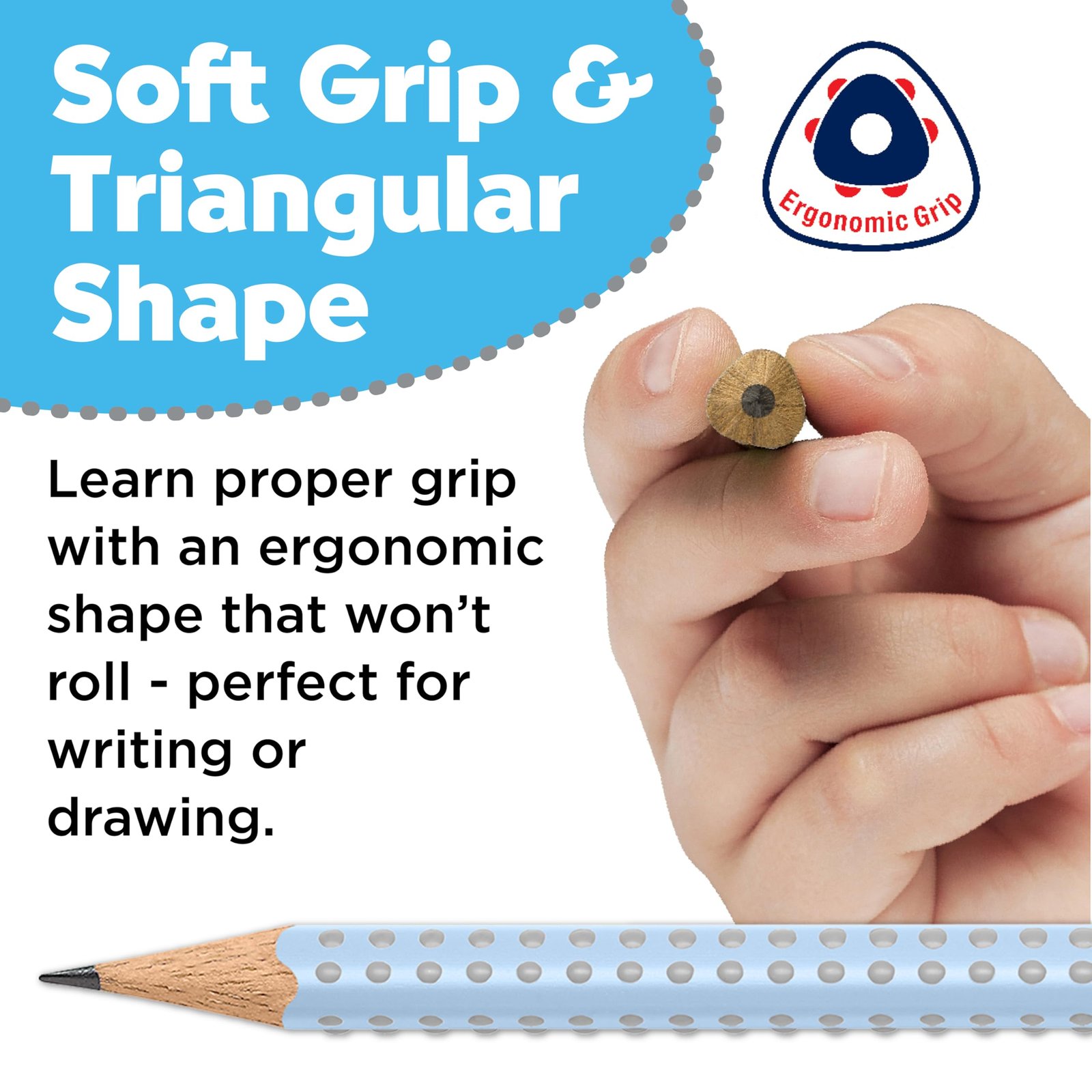 - The pencils have B hardness and an ergonomic triangular shape for fatigue-free writing