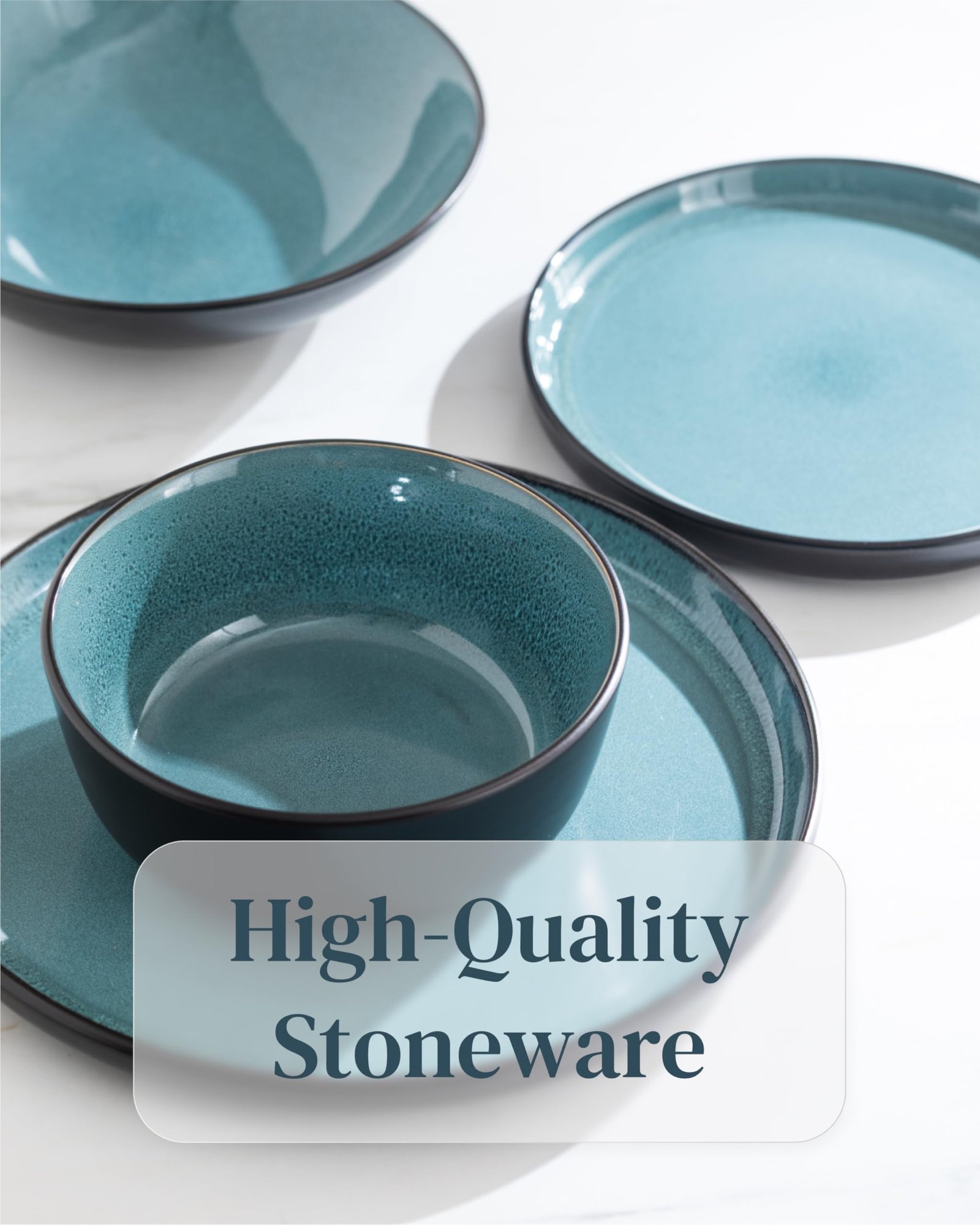 Ibiza Stoneware Dinnerware Set for 6 – Elegant Dishware – Dishwasher & Microwave Safe – Complete Dining Ensemble – Plates for Dining Service – Pure Living in Dark Petrol