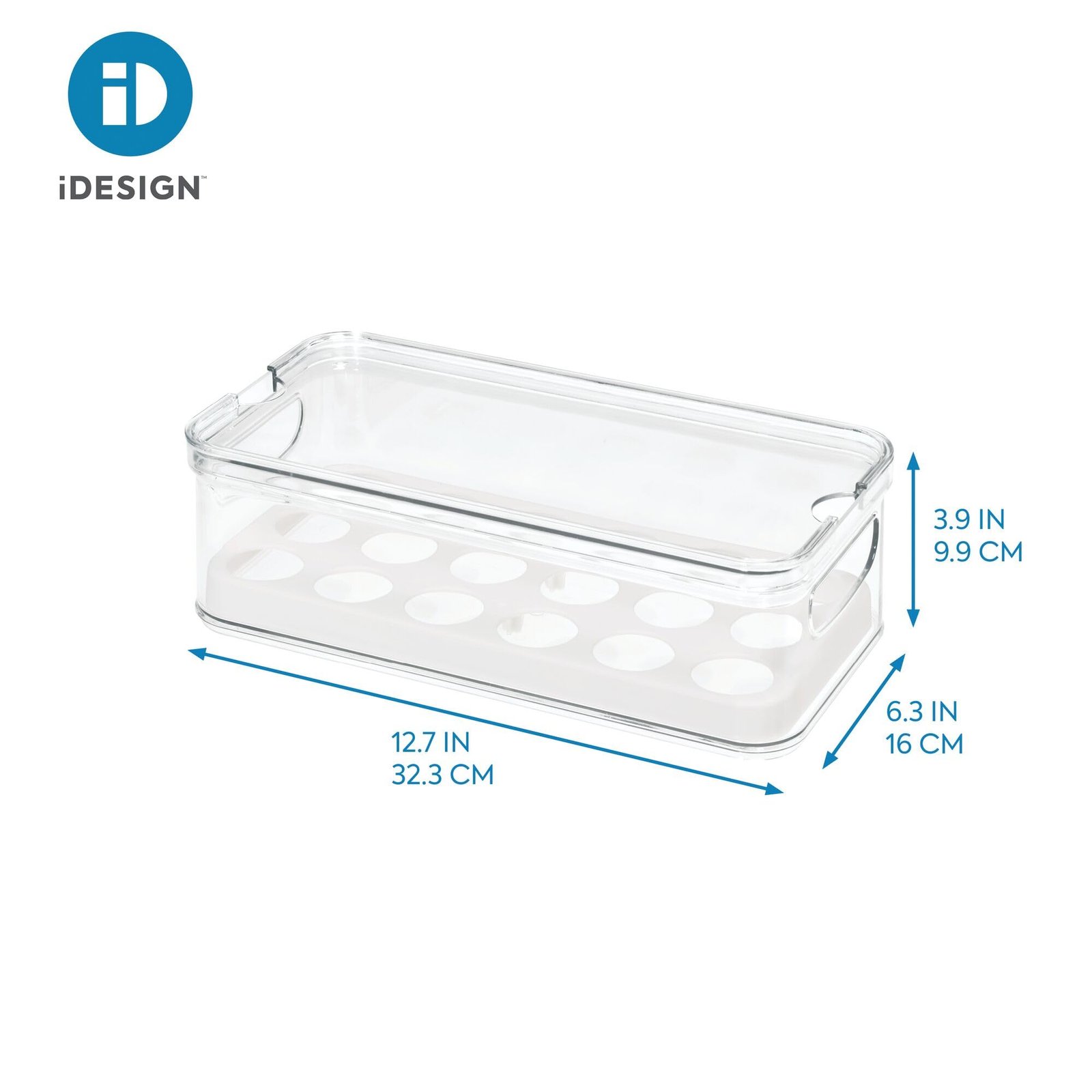 iDesign 18, Stackable BPA- Plastic Eggs, Portable Storage Box for Fridge or Kitchen Cupboard (Non Dishwasher safe), Clear/White, 32.3 cm x 16.1 cm x 9.9 cm