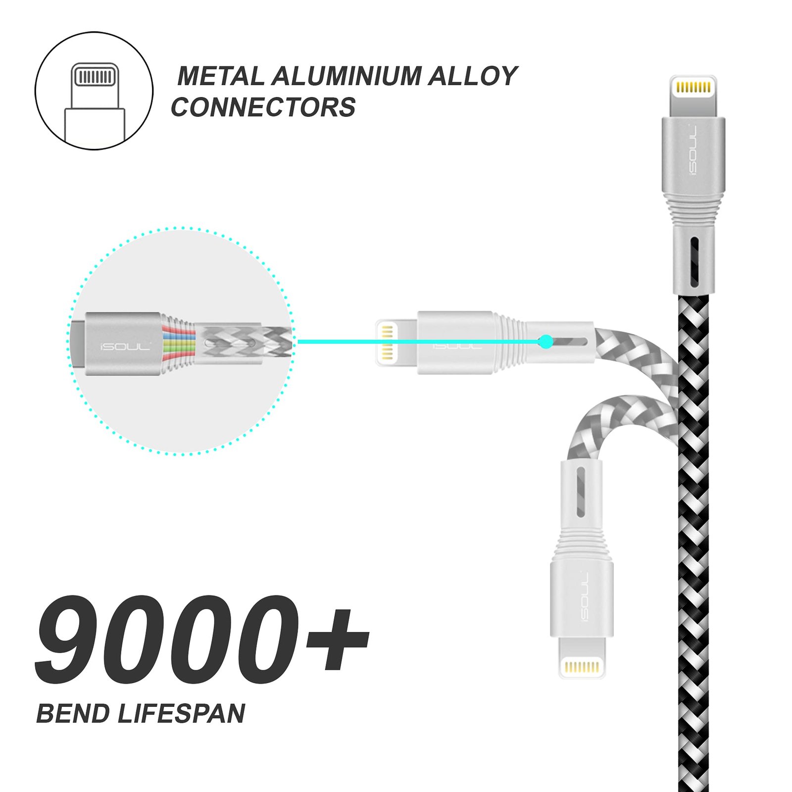 iSOUL Lightning iPhone Charger Cable, 1 Meter 3.3ft Braided USB Cord for iPhone 14 13 12 11 Pro XS Max XR X 10 8 7 6s Plus, iPad Air Pro Mini, iPod Ultra Fast Sync & Charging