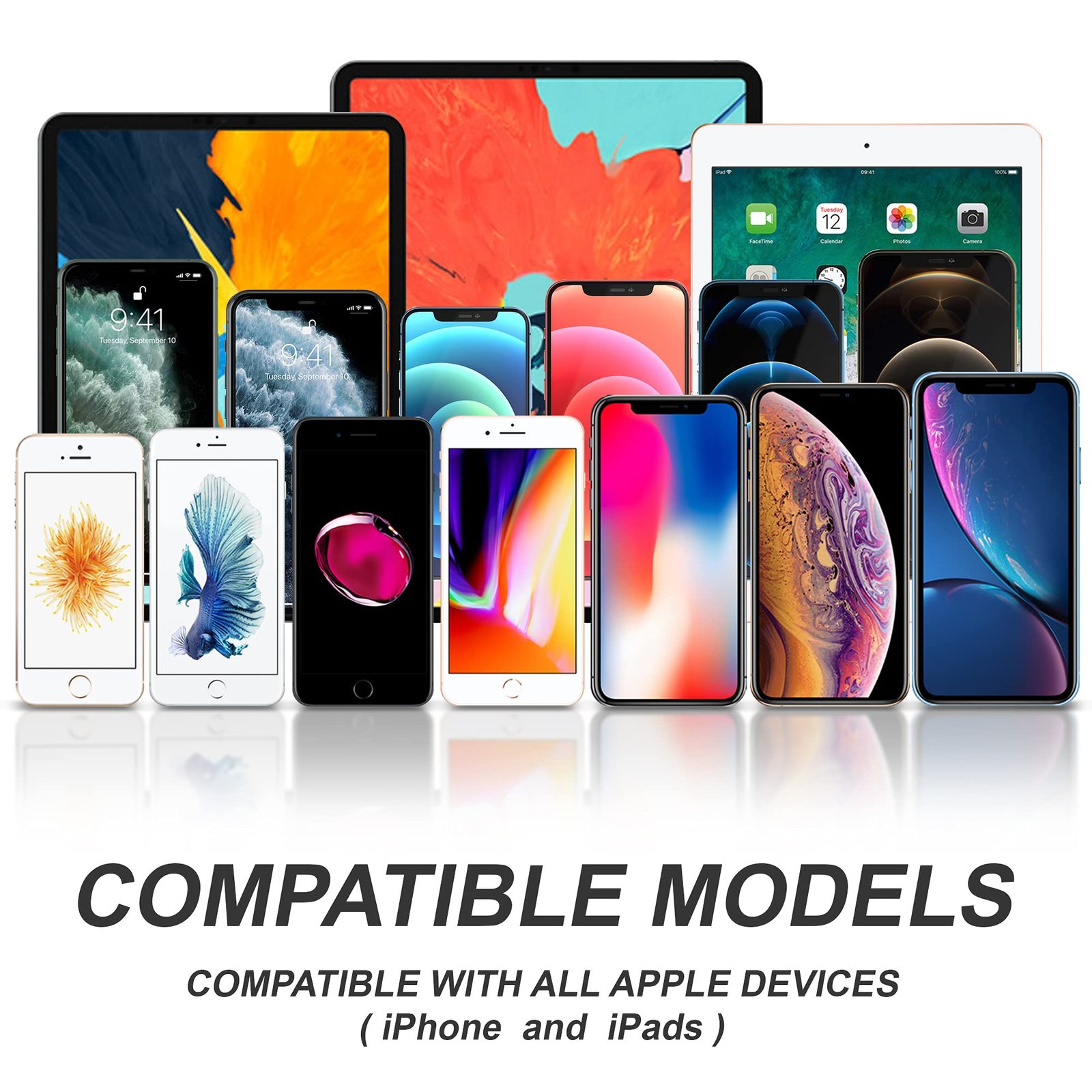 - [Wide Compatibility]: Using Apple’s lightning connector, this cable is compatible with the following lightning devices: iPhone 14 /13/13 Pro/13 Pro Max/13 Mini/12/12 Pro/12 Pro Max/12 Mini/XS/XS Max/X/XR/8 Plus/8/7 Plus/7/6s Plus/6s/6 Plus/6/5s/5c/5/iPad Pro/Air/Mini/iPod Nano/Touch as well as the latest iOS system