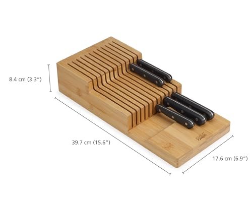 Joseph Joseph Drawerstore Knife Organiser, Holds Up to 12+ Knives, Kitchen Organisation & Drawer Storage, Bamboo