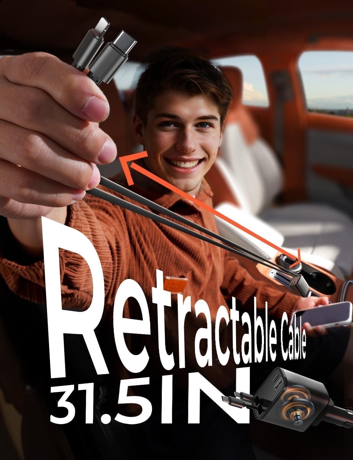 - [69W 4-in-1 Car Charger | Power Every Journey with Speed & Safety]: Engineered for drivers who demand more, this 69W Car Phone Charger four devices at once-fuel your iPhone16 (30W USB-C), iPad (15W port), dashcam (12W USB-A), and a passenger’s device (12W Cable)–all while conquering Snake Pass’s twists or M4’s rush-hour gridlock. Its vibration-proof design thrives on UK roads. Retract Instruction: Pull and hold the cable, gently extend 1 cm more, then release for automatic retraction