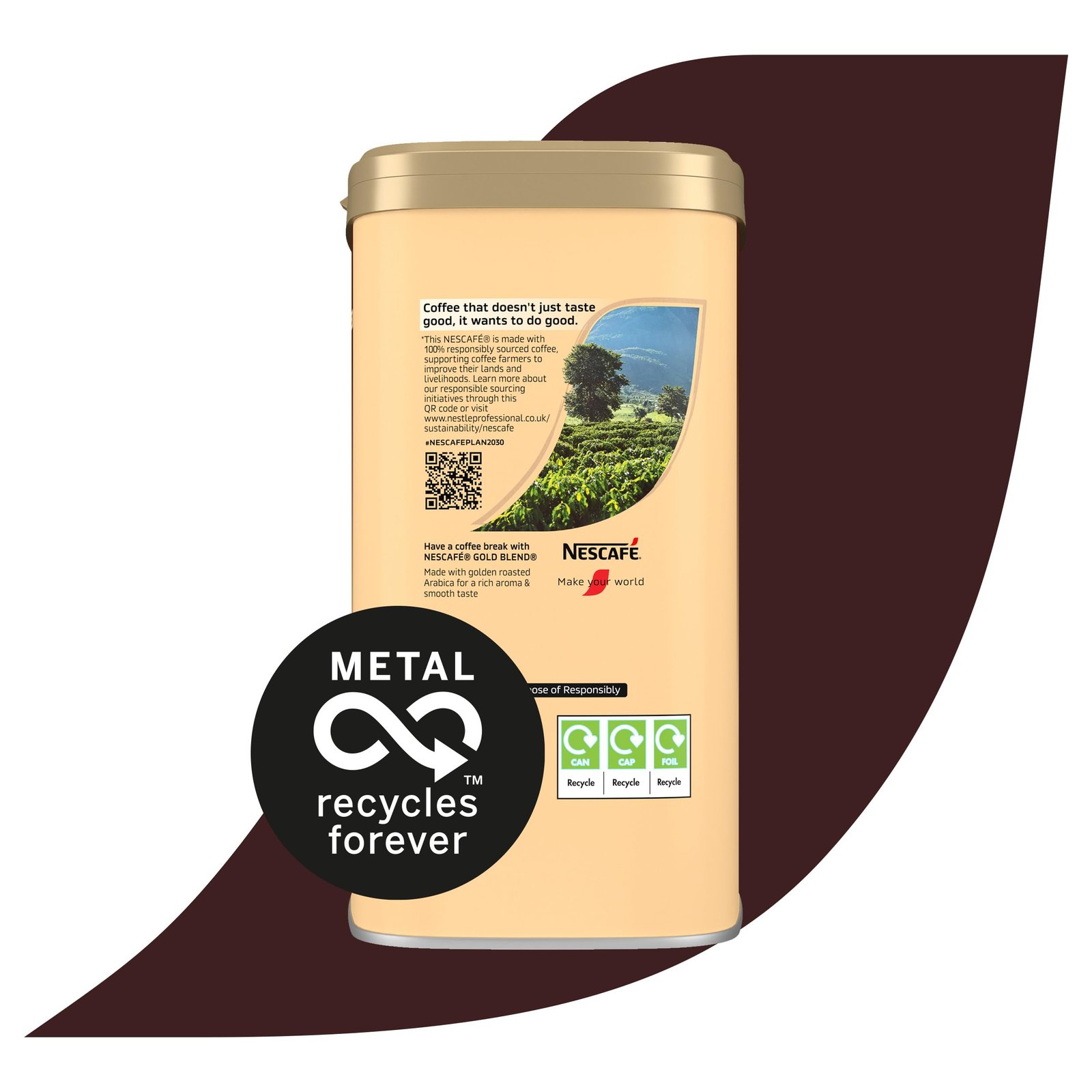 Our NESCAFÉ coffee tins are fully recyclable. Simply separate the tin, lid and foil, and place all three in the bins at your office recycling hub or in your home.