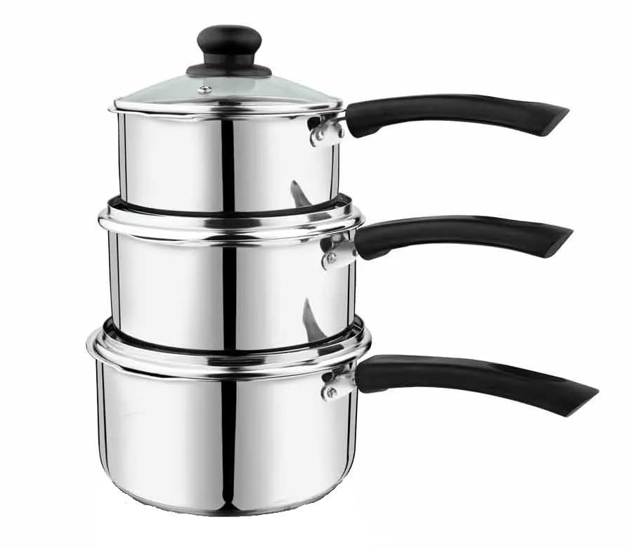 Details: About Product This stainless steel cookware clubs style and functionality. A sleek modern design; Impact bonded with a SAS bottom containing an aluminium core to ensure even heat distribution so your food cooks thoroughly and does not burn. It is made of hygienic stainless steel which is easy to clean. The handles are heat resistant and riveted for better grip and durability. Made from food grade high quality, thick stainless steel for longer use. To ensure uniform and faster cooking an inner layer of food safe AISI 304 grade stainless steel sandwiches a layer of high quality virgin aluminium. The base is a layer of AISI 430 grade magnetic stainless steel makes the cookware induction compatible. This stainless steel saucepot comes with riveted handles that are ergonomically designed, providing maximum durability and comfort. It is compatible across all heating platforms like gas, induction, ceramic, infrared and hotplate. Ideal for cooking stews, soups and pastas, as well as simmering, boiling and making sauces. 100% Food Safe Stainless Steel Saucepot is made from 100% food-grade stainless steel, making it safe to use on a regular basis, you can make ample amount of snacks and meals for your family. Glass Lid with Steam Vent The saucepot has a lid made from tempered glass with an outlet for steam release. Sturdy Handles The saucepot comes with durable sturdy riveted bakelite hollow handles. This enables easy lifting and handling of this cookware. Induction And Gas Stove Compatible Sandwich Bottom: To avoid any hotspots or coldspots we have pioneered the sandwich bottom cookware. The middle layer of aluminum is sandwiched between the two stainless steel layers. This sandwich bottom technology, ensures even distribution of heat where food will not burn or stick. This also allows much faster cooking, which saves a lot of fuel and time. This also ensures that the base always remains flat and does not bulge.