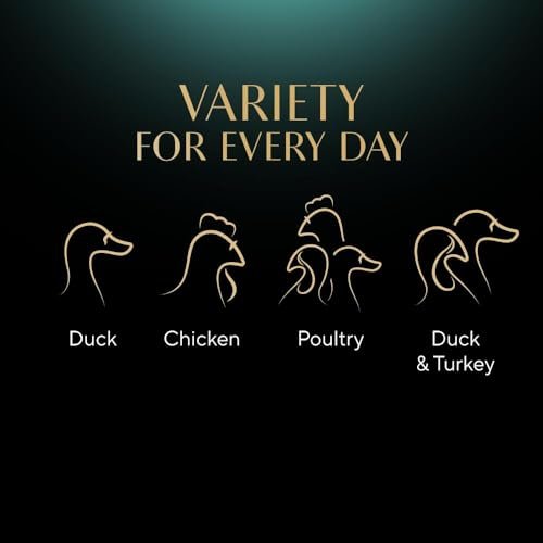• Box with 4 lavish varieties of wet cat food pouches in gravy: duck, turkey, poultry and chicken cat food wet pouches in a delicious gravy sauce / without artificial colours or preservatives
