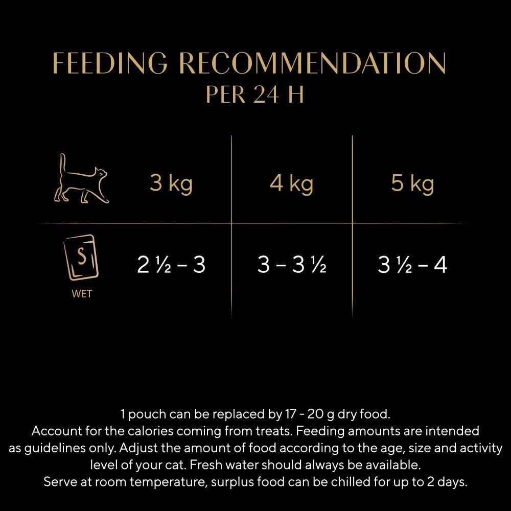 • A euphoric meal for every day: For adult and senior cats (+12 months) / 3 trays daily for a 4 kg cat / Provide food at room temperature with water / Chill surplus food for up to 2 days