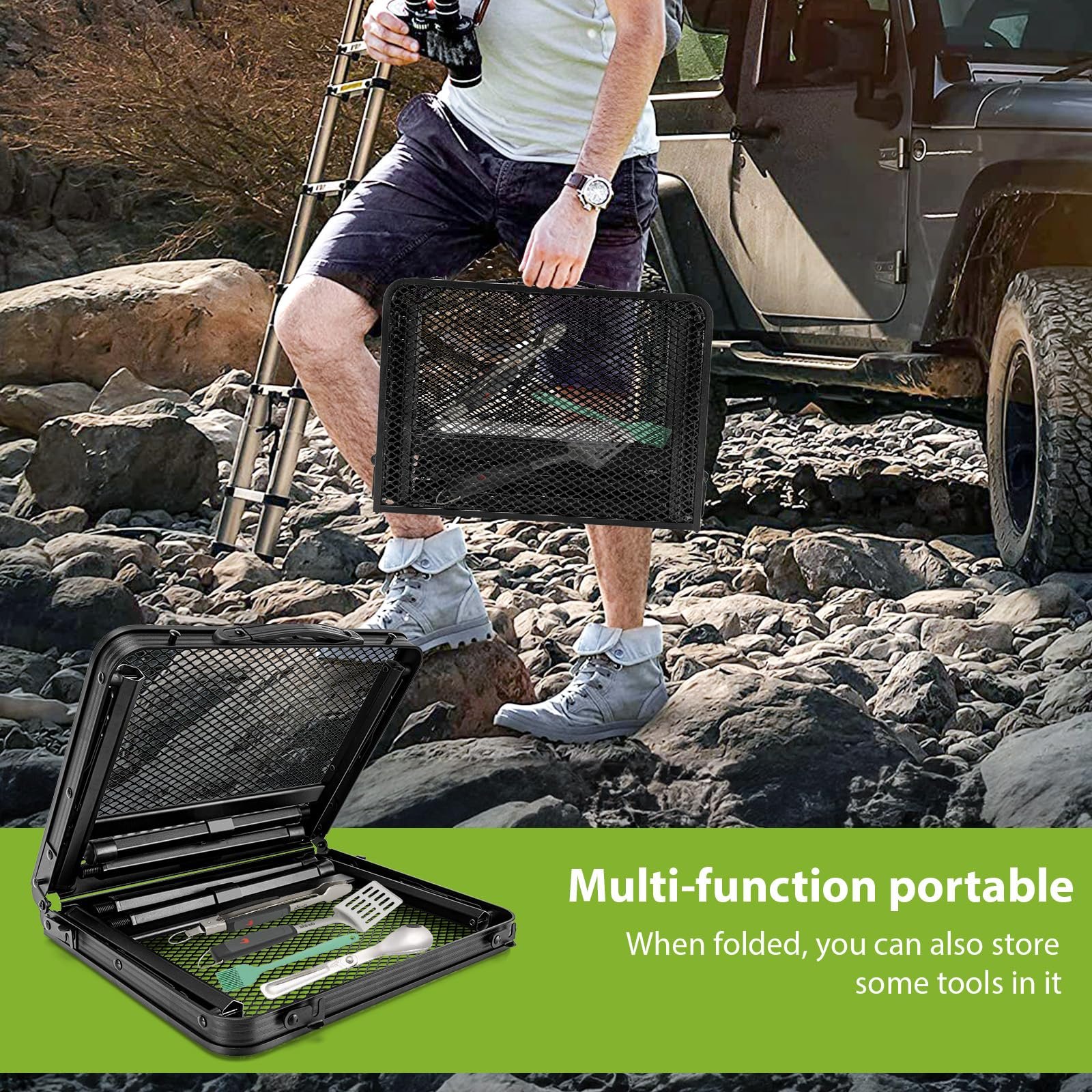 - Compact and Portable Grill Table: The folding grill table measures 15.8 x 11.8 x 2.5 inches when folded and is very easy to store and transport when folded. It weighs only 4 pounds, perfect for outdoor adventures, beach outings, camping trips or picnics. Enjoy convenience without sacrificing space!