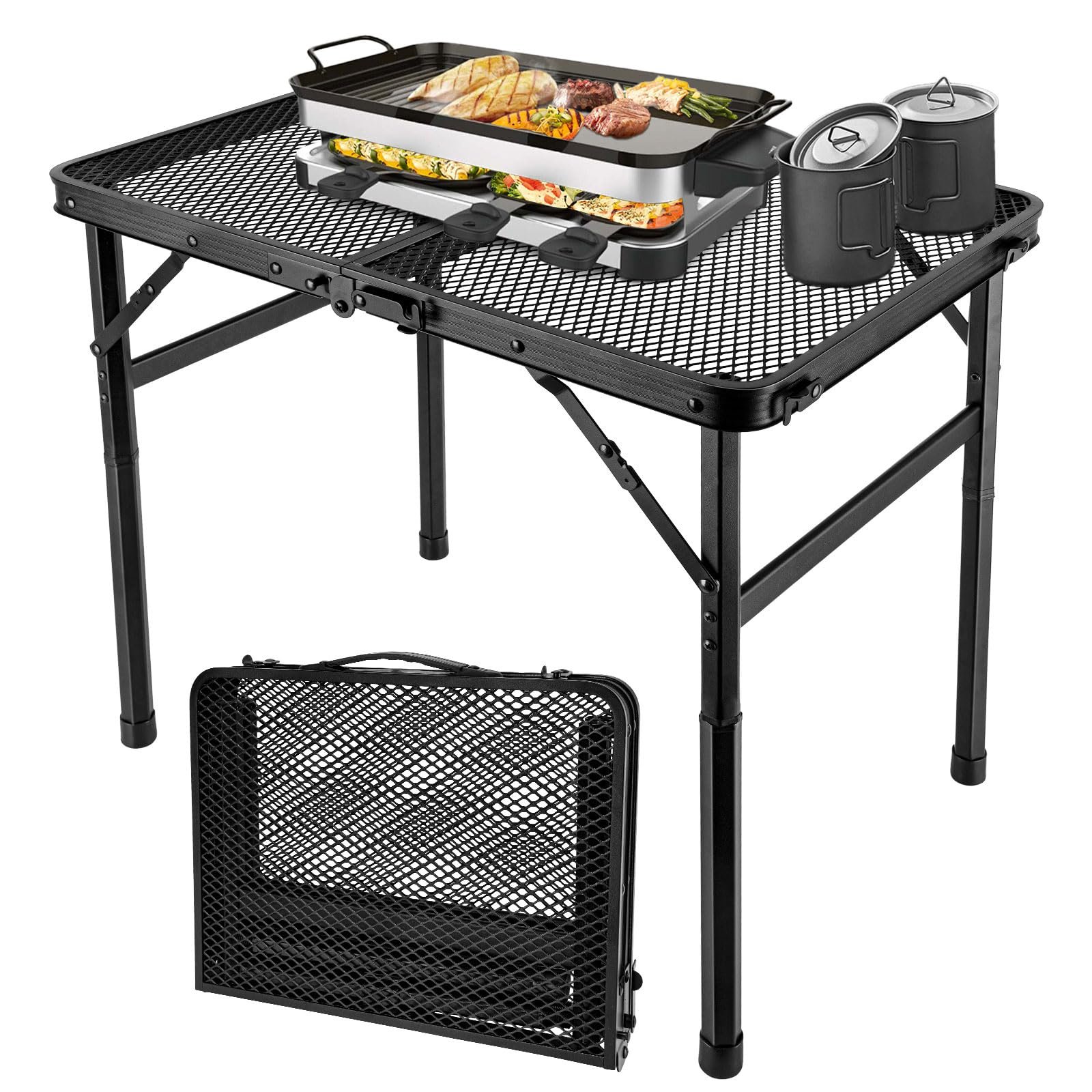 - Easy to Clean: The barbecue table has a unique mesh table top design reduces the weight of the table while effectively preventing water buildup, and most importantly, the bbq table top is easy to clean, just wipe it clean with a damp cloth. Enjoy your food without the hassle of cleaning this folding table!