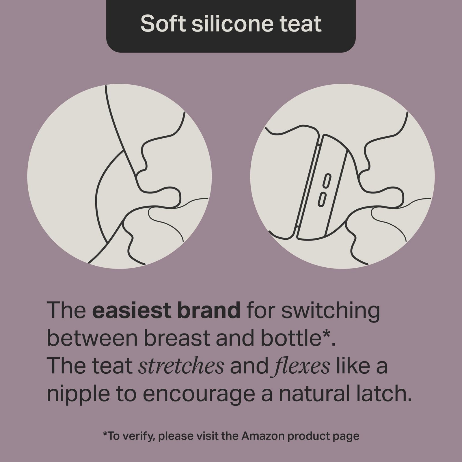 - Natural latch: Tommee Tippee baby bottle teats are made from soft silicone. They’re shaped like a breast to encourage a natural latch and help to prevent nipple confusion when switching between breast, bottle and back again
