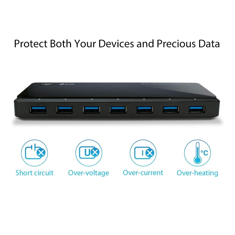 - Package includes: TP-Link USB 3.0 7-port Hub with two charging ports UH720, 12 V/3.3 A power adapter, 1 m USB 3.0 cable and instruction manual.
